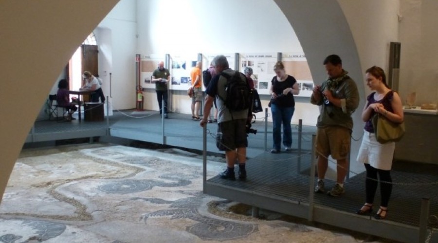 In addition to charming Romanesque and Gothic Churches, the town features interesting Roman ruins such as the theatre and the pavement of the Roman baths with a mosaic representing sea animals.
