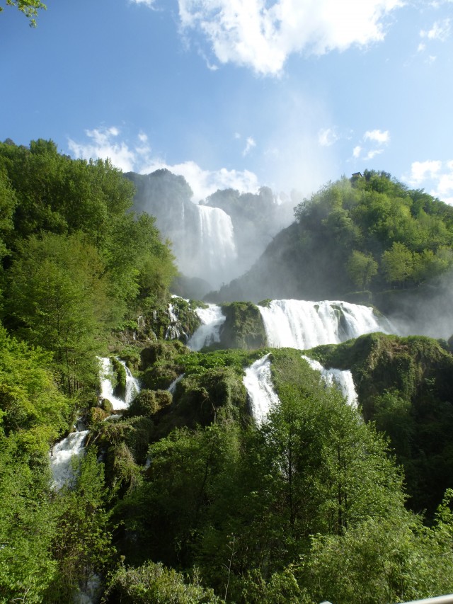 La Cascata delle Marmore, la seconda più alta d'Europa su un dislivello di 165 m, è stata creata artificialmente dai Romani nel III secolo a.C. per risolvere il problema delle inondazioni nella valle. A creare questo incredibile spettacolo è il salto del fiume Velino sul fiume Nera, che scorre nella bassa valle. La cascata è stata descritta da scrittori e poeti come Byron e Goethe, impegnati nel Grand Tour, il romantico itinerario del XIX secolo che toccava i luoghi più belli d'Italia. Oggi, la cascata si può visitare all'interno di un Parco Naturalistico che dispone di percorsi e sentieri lungo il pendio della montagna.